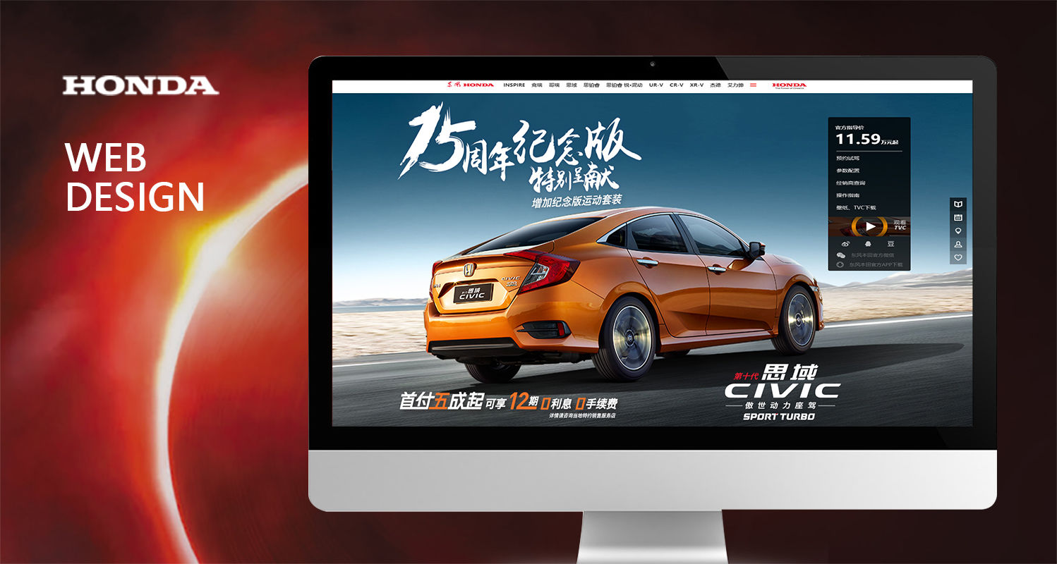东风本田旗下汽车品牌经40载的岁月历练,凝聚诸多领先时代的先进科技,不断演绎进化,呈现极具未来感和科技感的魅力。四个石头从产品角度进行深度调研,根据受众需求重新规划网站页面布局,将产品主要卖点、规格配置进行了信息的清晰化……